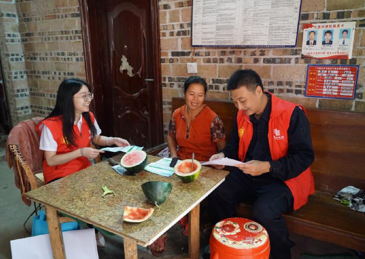南方電網(wǎng)廣西富川縣公司青年志愿者在村民家宣傳節(jié)能等知識(shí)