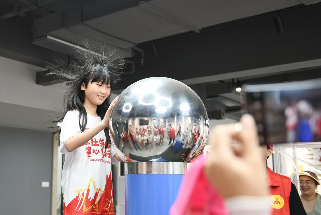 “摸一個(gè)球居然能讓頭發(fā)立起來,太神奇了。”同學(xué)們懷著既忐忑又好奇的心情,紛紛進(jìn)行了靜電球體驗(yàn),連連稱奇。一個(gè)個(gè)互動(dòng)游戲,讓同學(xué)們爭相體驗(yàn),樂此不疲,他們摩擦起電讓頭發(fā)起飛的樂趣,感受用自己的力量產(chǎn)生電的魅力,也讓他們對電有了一個(gè)更深入的認(rèn)識(shí)。隨后,志愿者還通過提前設(shè)置的簡單電力知識(shí)互動(dòng)問答,在講解并分析中,讓小朋友們進(jìn)一步了解用電安全,從而養(yǎng)成節(jié)約用電的好習(xí)慣。
