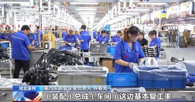 某汽車膠管企業(yè)負(fù)責(zé)人 許春光:膠管擠出線11條復(fù)工了4條,裝配總成車間這邊基本復(fù)工率大概在70%—80%之間,我估計裝配總成車間還有不到一個星期差不多就恢復(fù)正常了。