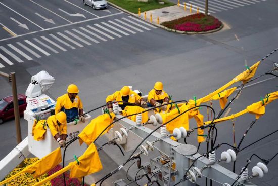 當(dāng)天上午10時,兩輛“大黃蜂”一字排開,4位電力“小黃人”分兩組身著絕緣服乘著絕緣斗臂車緩緩升起,在絕緣斗里熟練地進(jìn)行操作,相互配合,桿線下方,地面服務(wù)人員和現(xiàn)場安全監(jiān)護(hù)人員各盡其責(zé),施工有條不紊地進(jìn)行著,由于采用旁路作業(yè)方式,在全程長達(dá)4個小時的作業(yè)中,真正做到了用戶零感知,有效保障了供電可靠性。