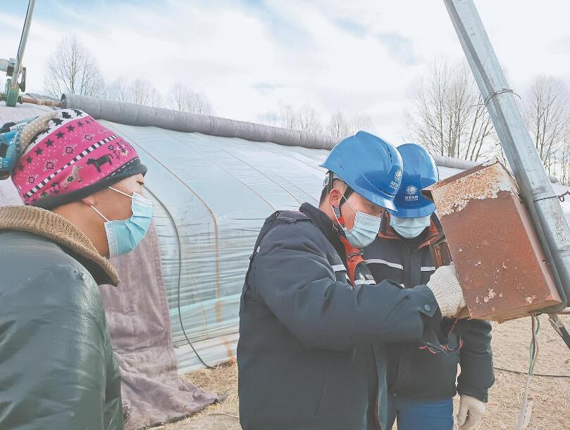 供電員工在次汗素村為蔬菜種植戶檢查用電設(shè)備。