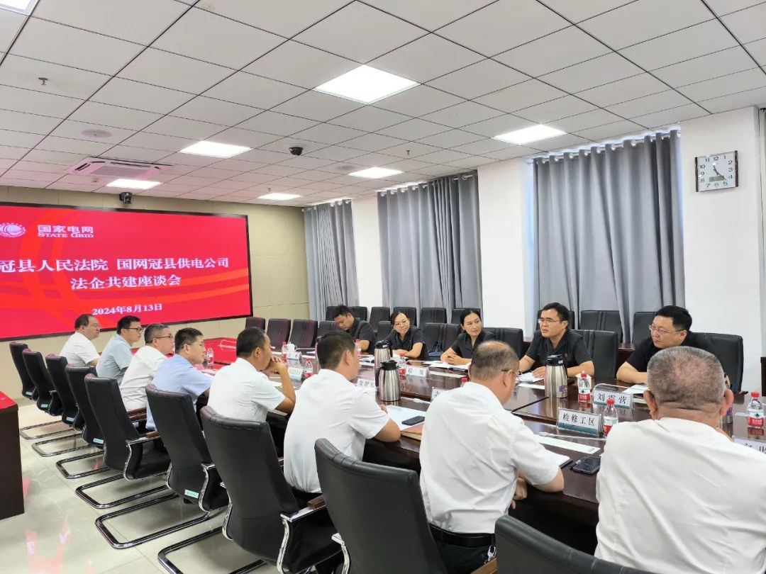 為進一步優(yōu)化法治營商環(huán)境,滿足企業(yè)日益增長的司法需求,8月13日,冠縣法院與國網(wǎng)冠縣供電公司召開法企共建座談會。國網(wǎng)冠縣供電公司黨組書記常增軍、冠縣法院刑庭庭長程敏、民二庭負責人李彥華及相關人員參加座談。