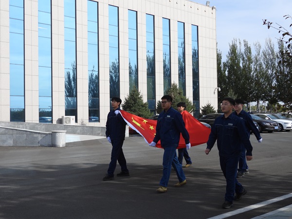 上午8時30分,升旗儀式正式開始。該公司各團支部青年團員組成的護旗手隊伍邁著堅定步伐護衛(wèi)國旗走向升旗臺。伴隨著莊嚴激昂的《義勇軍進行曲》,鮮艷的五星紅旗冉冉升起,廣大青年職工莊嚴肅立,面向國旗行注目禮的同時,懷著無比崇敬的心情高唱國歌,向偉大的祖國表達崇高敬意和深情祝福。