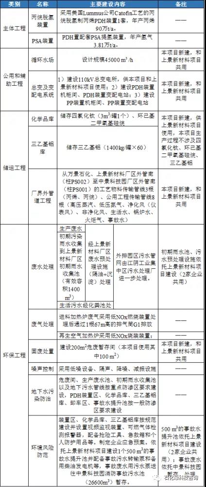 (4) 建設內(nèi)容:擬建成90萬噸/年丙烷脫氫制丙烯裝置,配套建設PSA提氫裝置以及循環(huán)水場、變電所等公輔設施,以及萬景至中景科技園之間的連接管線,其余的公建和輔助工程依托上景新材料項目、以及中景科技園和園區(qū)已建成設施。