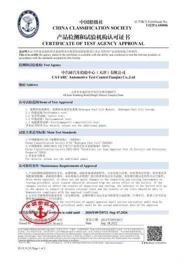 近日,中國(guó)船級(jí)社天津分社完成國(guó)內(nèi)首個(gè)船用氫燃料發(fā)電裝置試驗(yàn)機(jī)構(gòu)認(rèn)可,中國(guó)船級(jí)社向中汽研新能源汽車檢驗(yàn)中心(天津)有限公司頒發(fā)了國(guó)內(nèi)首張船用氫燃料電池及發(fā)電系統(tǒng)檢測(cè)和試驗(yàn)機(jī)構(gòu)認(rèn)可證書,中國(guó)船級(jí)社(CCS)天津分社副經(jīng)理、中汽研新能源汽車檢驗(yàn)中心總經(jīng)理等出席本次頒證儀式。