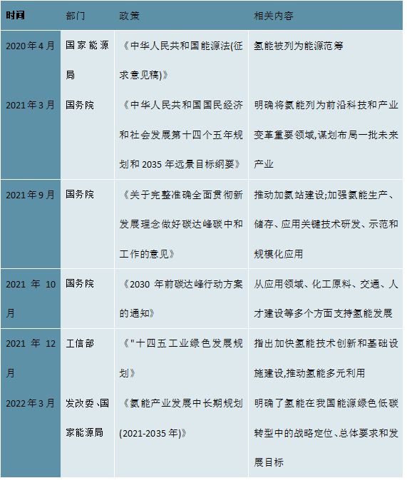 圖表:2020-2022年國(guó)家層面氫能產(chǎn)業(yè)相關(guān)政策