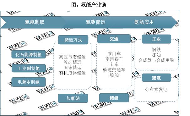 目前氫能產(chǎn)業(yè)已經(jīng)開(kāi)始形成“制、儲(chǔ)、運(yùn)、用”四大環(huán)節(jié),氫能的利用方式逐漸多元化。上游制取環(huán)節(jié),目前主要有化石能源制氫、工業(yè)副產(chǎn)氫和電解水制氫等方式;中游儲(chǔ)運(yùn)環(huán)節(jié)存在氣態(tài)、液態(tài)、固態(tài)等方式,加氫站等基礎(chǔ)設(shè)施建設(shè)也是重要部分;下游應(yīng)用環(huán)節(jié),當(dāng)前氫能主要應(yīng)用在工業(yè)領(lǐng)域,未來(lái)有望擴(kuò)展為交通、工業(yè)、建筑、儲(chǔ)能等多領(lǐng)域。