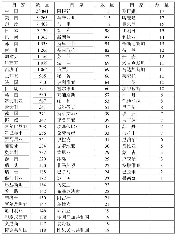 本數(shù)據(jù)來自國(guó)際大壩委員會(huì)的統(tǒng)計(jì),根據(jù)2020年4月的登記注冊(cè),全球現(xiàn)有大壩數(shù)量為58 713座水壩,其中中國(guó)占全球總量的23841/58713=40.6%。