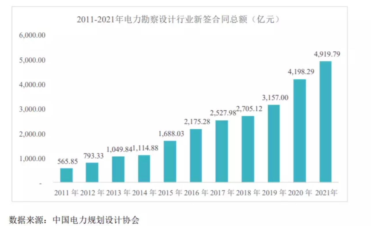 招股書顯示,根據(jù)中國電力規(guī)劃設(shè)計協(xié)會發(fā)布的電力勘察設(shè)計行業(yè)各年度統(tǒng)計數(shù)據(jù)顯示,2021年,電力勘察設(shè)計行業(yè)實現(xiàn)營業(yè)收入2,684.21億元,同比增長26.82%。