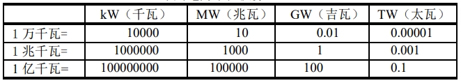 常用電力單位換算