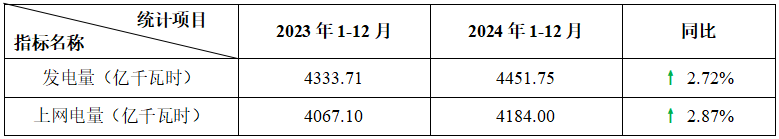 表2:2024年1-12月運行核電機組電力生產(chǎn)指標統(tǒng)計表