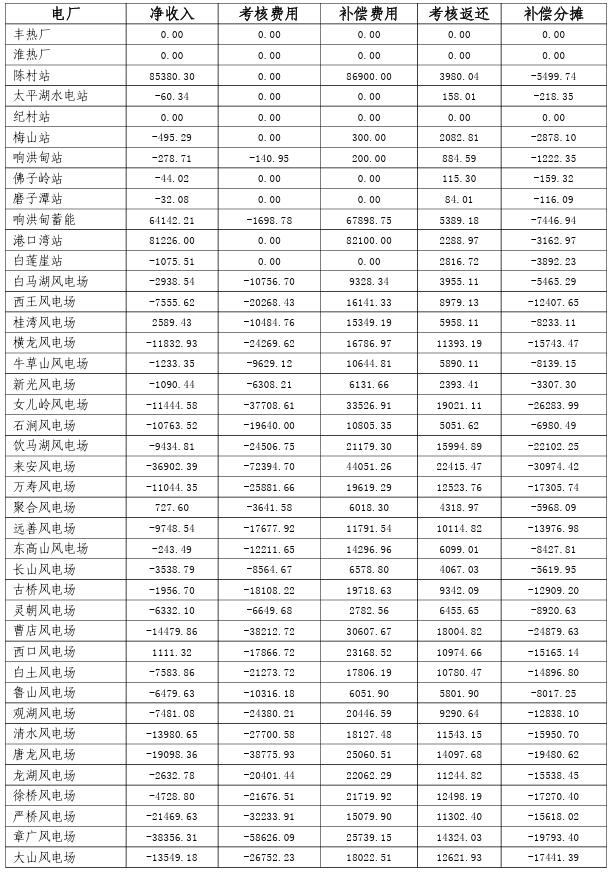 根據(jù)華東區(qū)域“兩個(gè)細(xì)則”規(guī)則要求,國(guó)網(wǎng)安徽省電力有限公司完成了2023年10-12月直調(diào)電廠并網(wǎng)運(yùn)行考核、輔助服務(wù)補(bǔ)償統(tǒng)計(jì)計(jì)算,并向我局報(bào)送了并網(wǎng)運(yùn)行考核及輔助服務(wù)補(bǔ)償情況。其中,吉泉直流配套跨省跨區(qū)新建火電機(jī)組調(diào)試運(yùn)行期差額資金共計(jì)8882813.74元,納入12月輔助服務(wù)補(bǔ)償。2023年10-12月安徽電網(wǎng)發(fā)電廠輔助服務(wù)補(bǔ)償及并網(wǎng)運(yùn)行考核費(fèi)用結(jié)算表詳見(jiàn)附件,現(xiàn)予公示。如有不同意見(jiàn),可于3月1日前向我局反映。