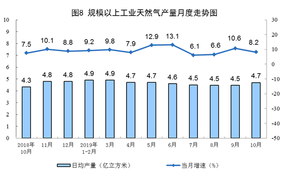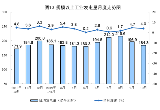 10月份,規(guī)模以上工業(yè)原煤、原油生產(chǎn)平穩(wěn),天然氣、電力生產(chǎn)放緩。