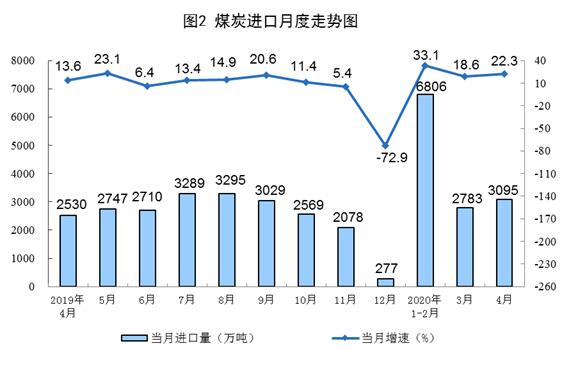 天然氣進(jìn)口小幅增長。4月份,進(jìn)口天然氣773萬噸,同比增長1.0%。1—4月份,進(jìn)口天然氣3233萬噸,同比增長1.5%。
