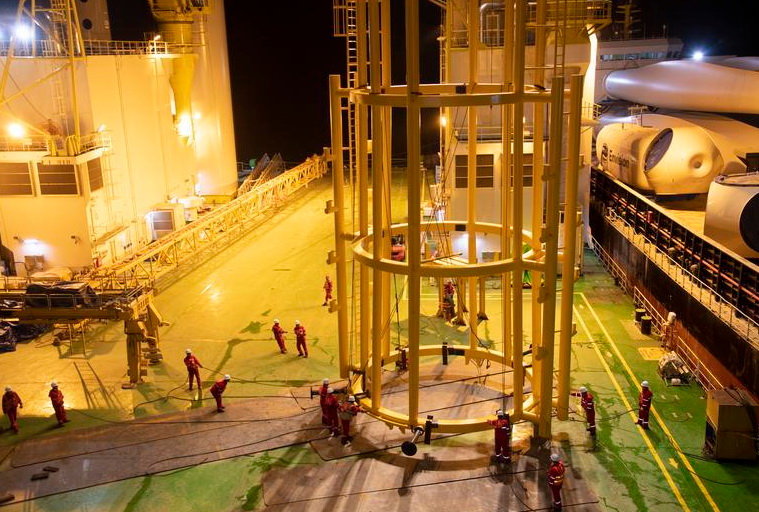 8月4日,搭載著全球已下線的最長126米風(fēng)電葉片的“遠(yuǎn)瑞169”輪成功抵靠山東港口煙臺港蓬萊港公司泊位,在兩臺門機(jī)的高效配合下,該海上“巨無霸”僅用25分鐘便成功起吊下船,再次打破山東港口最長風(fēng)電葉片吊裝紀(jì)錄,持續(xù)擦亮“中國北方知名風(fēng)電設(shè)備作業(yè)母港”稱號。