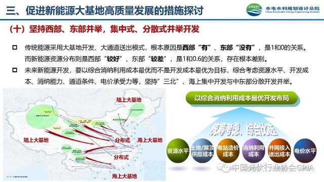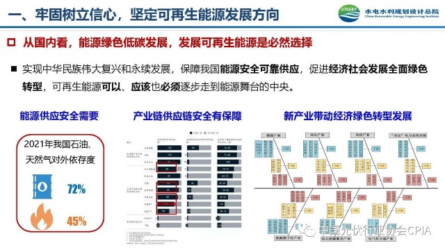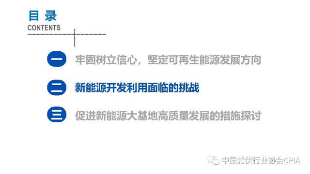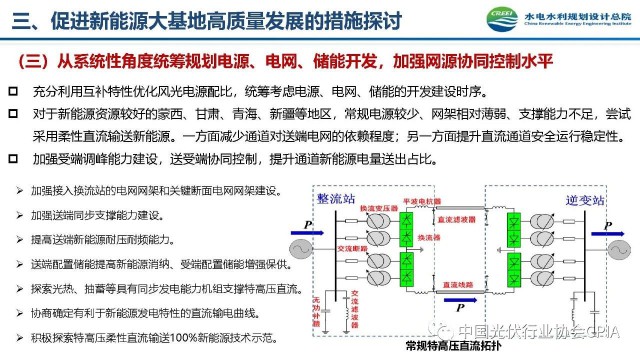 2022年12月1日,由中國光伏行業(yè)協(xié)會主辦的2022中國光伏行業(yè)年度大會暨(滁州)光伏高質(zhì)量發(fā)展高峰論壇在安徽滁州成功召開。水電水利規(guī)劃設(shè)計總院新能源部副主任王躍峰作多措并舉促進新能源大基地高質(zhì)量建設(shè)與發(fā)展的報告。王主任指出了新能源開發(fā)面臨的五點挑戰(zhàn),并提出了促進新能源大基地高質(zhì)量發(fā)展的十條措施。