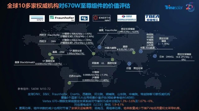 除此之外,DNV、拉美Enertis、北美Black&Veatch、西勘院等十余家國內(nèi)外權(quán)威機(jī)構(gòu)在全球范圍內(nèi)對600W+高功率組件進(jìn)行了廣泛的價值分析,覆蓋了15大應(yīng)用場景。