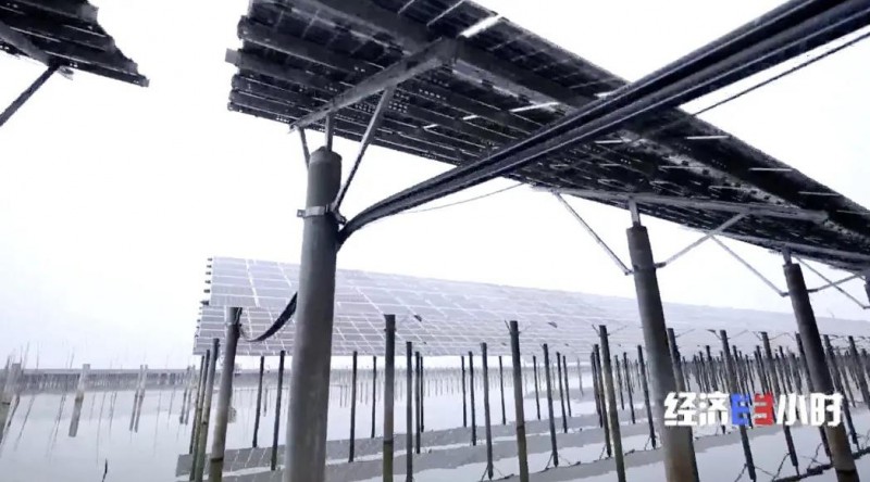 這個漁光一體光伏電站,光伏板能遮擋陽光,降低水面溫度,減少水分蒸發(fā)的同時抑制藻類生長,為魚蝦提供更好的生長環(huán)境。