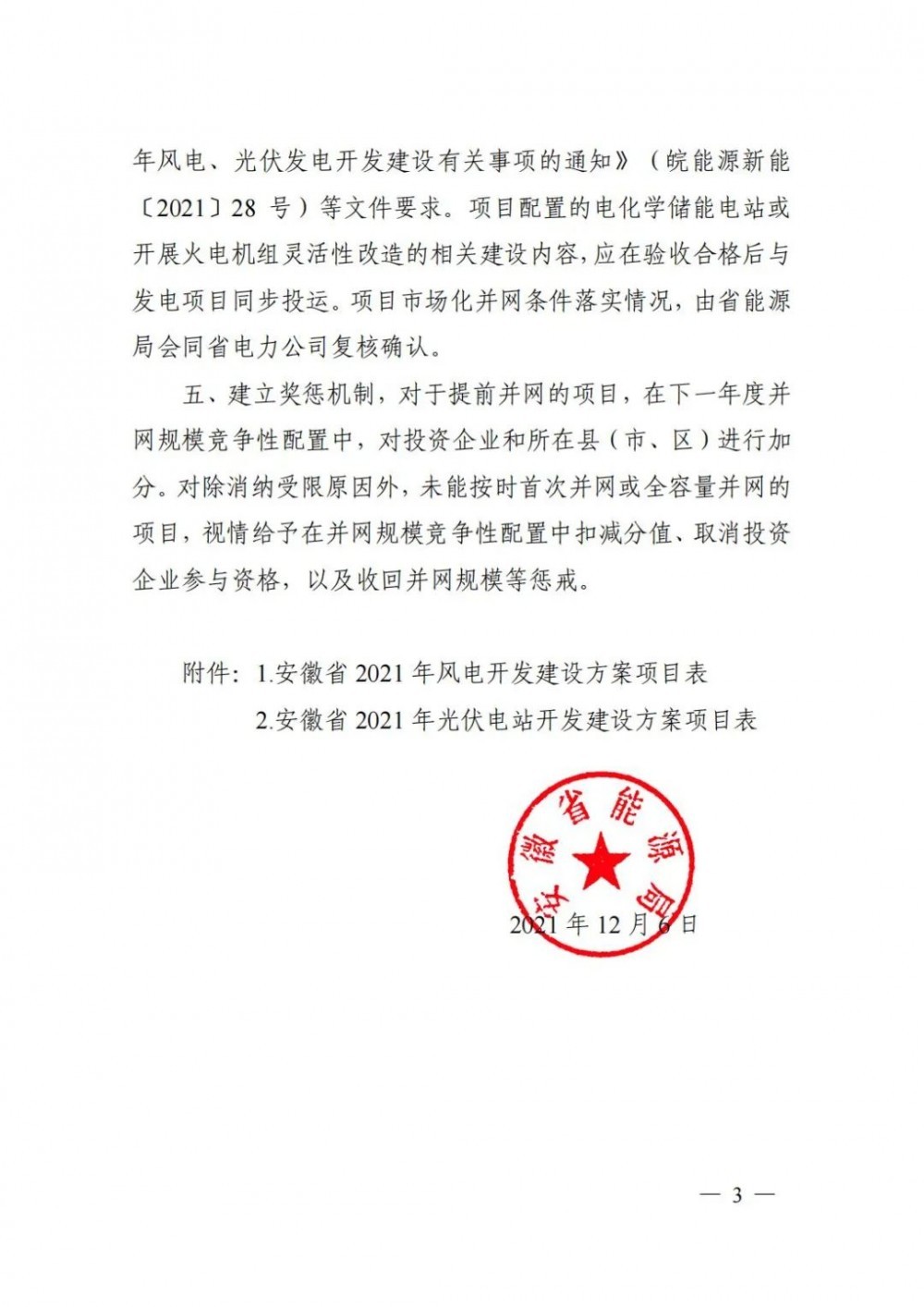 此外,安徽省要求各投資企業(yè)要切實(shí)加快項(xiàng)目建設(shè)進(jìn)度,除并網(wǎng)消納受限原因外,光伏電站項(xiàng)目應(yīng)于2022年底前首次并網(wǎng),2023年6月底前全容量并網(wǎng);風(fēng)電項(xiàng)目應(yīng)于2023年底前首次并網(wǎng),2024年6月底前全容量并網(wǎng)。