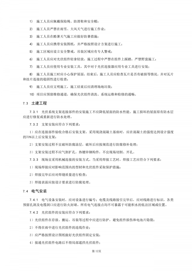 分布式光伏設(shè)計(jì)、安裝和運(yùn)維企業(yè)應(yīng)配備光伏發(fā)電領(lǐng)域的專職技術(shù)人員,應(yīng)具備與服務(wù)內(nèi)容相匹配的技術(shù)能力,鼓勵(lì)從業(yè)人員積極提升專業(yè)能力,主動(dòng)參加由行業(yè)組織或?qū)I(yè)機(jī)構(gòu)組織開展的針對性系列技術(shù)培訓(xùn)并取得培訓(xùn)合格證書。