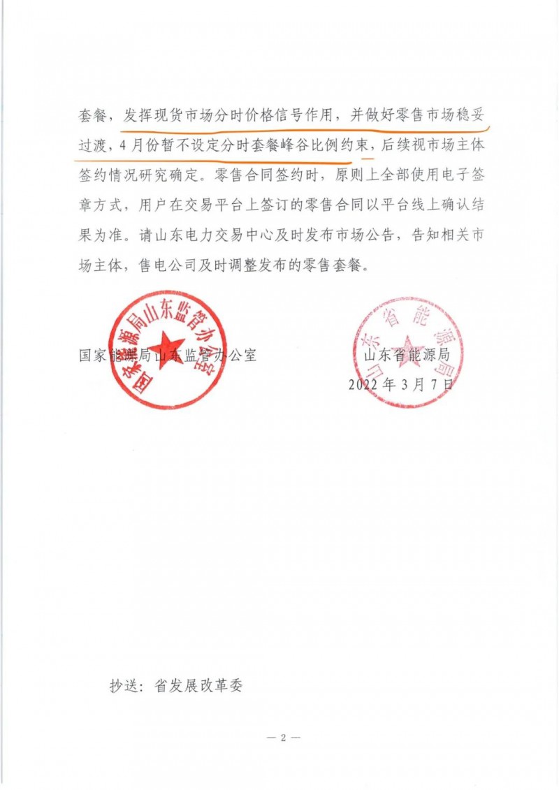 在此次交易公告發(fā)布之前,本月另一份文件的印發(fā)也相當(dāng)重要:3月7日,山東政府發(fā)布《關(guān)于做好山東省電力現(xiàn)貨市場(chǎng)零售交易有關(guān)事項(xiàng)的通知》,宣布從4月起,山東零售市場(chǎng)取消固定費(fèi)率套餐,引導(dǎo)市場(chǎng)主體簽訂基于山東現(xiàn)貨市場(chǎng)價(jià)格的分時(shí)價(jià)格類套餐。(下圖)