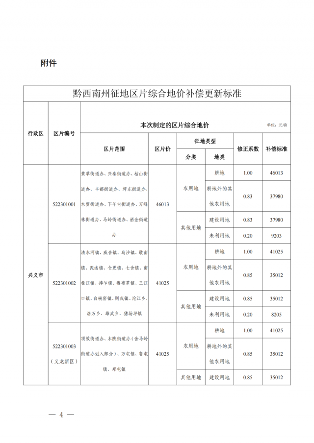 根據《州人民政府關于公布實施黔西南州征地區(qū)片綜合地價補償更新標準的通知》(黔西南府函〔2020〕69號)補償標準執(zhí)行。