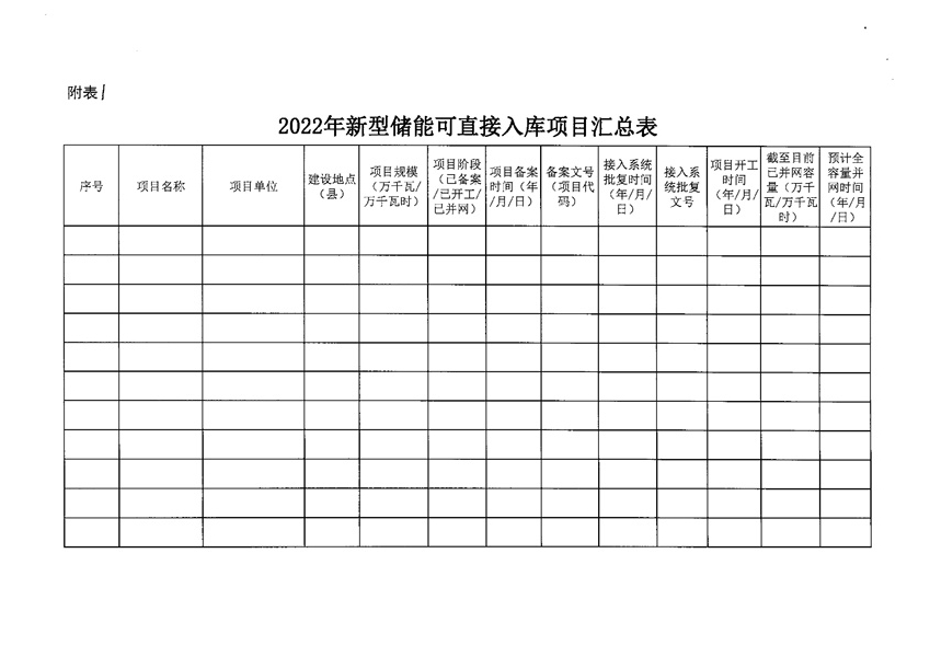請各企業(yè)認(rèn)真閱讀省能源局通知內(nèi)容,并于10月26日前將《2022年新型儲(chǔ)能可直接入庫項(xiàng)目匯總表》、《2022年新型儲(chǔ)能申請新增入庫項(xiàng)目匯總表》及相關(guān)證明材料的電子版(加蓋企業(yè)公章的PDF版和可編輯Excel版)發(fā)送至郵箱:[email protected],逾期不再受理。