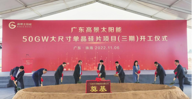 11月6日,廣東高景太陽(yáng)能50GW大尺寸單晶硅片項(xiàng)目(三期)開工儀式在珠海市金灣區(qū)舉行。該工程的動(dòng)工,較原計(jì)劃提前了半年,延續(xù)了整個(gè)項(xiàng)目高速度成長(zhǎng)的發(fā)展趨勢(shì)。過(guò)去的22個(gè)月,落地珠海金灣的高景太陽(yáng)能不斷刷新行業(yè)記錄:項(xiàng)目簽約后39天即一期開工奠基,140天生產(chǎn)出第一張大尺寸硅片,540天達(dá)成二期30GW滿產(chǎn),比原計(jì)劃提前了半年,600天產(chǎn)值突破百億……據(jù)悉,此次啟動(dòng)的珠?;厝?20GW)項(xiàng)目建設(shè)滿產(chǎn)后可增加年產(chǎn)值約140億元。