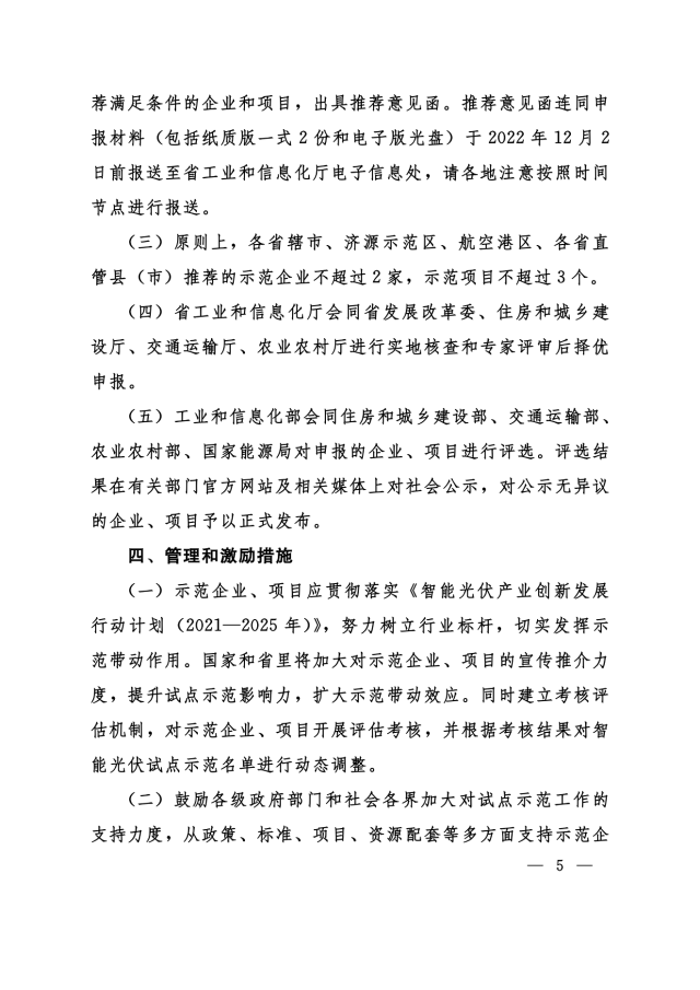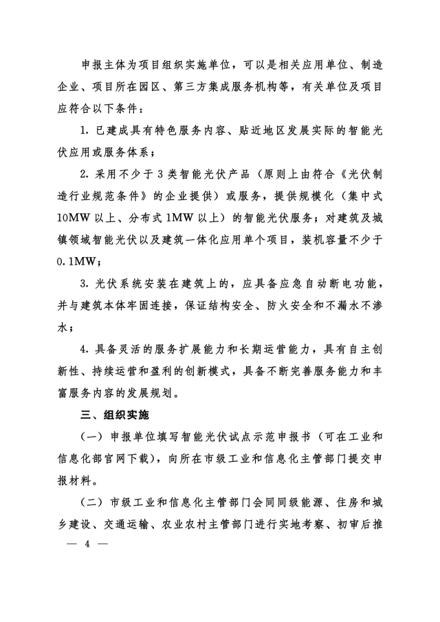 11月24日,河南省工信廳、發(fā)改委、住建廳、交通廳、農(nóng)業(yè)廳等聯(lián)合下發(fā)《關(guān)于組織申報第三批智能光伏試點示范的通知》,對示范企業(yè)、示范項目予以支持,包括: