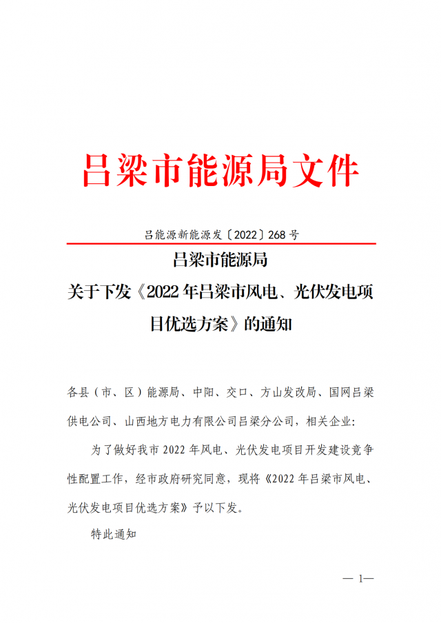 近日,山西呂梁市能源局發(fā)布關(guān)于《2022年呂梁市風(fēng)電、光伏發(fā)電項(xiàng)目優(yōu)選方案》的通知。