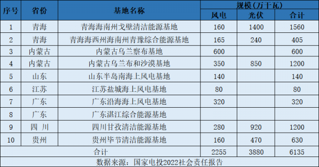 國家電投2022年社會責任報告顯示,國家電投獲得了十大新能源基地的開發(fā)權(quán),其中包括,內(nèi)蒙古烏蘭布和沙漠基地,規(guī)模共計1200萬千瓦。