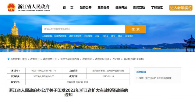 7月17日,浙江省人民政府辦公廳關于印發(fā)2023年浙江省擴大有效投資政策的通知,通知指出,支持可再生能源高質量發(fā)展。繼續(xù)對投產的光伏、風電項目實行全額保障性并網。
