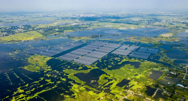 山東省濰坊市壽光市羊口鎮(zhèn)是百年曬鹽之地,這里的鹽堿地改良一直是個難題。國家電投壽光官臺營子150兆瓦漁光互補發(fā)電項目通過廢舊低效鹽田水產(chǎn)養(yǎng)殖與光伏發(fā)電相結(jié)合,在水面上方架設光伏板陣列、板下水域養(yǎng)殖魚蝦,實現(xiàn)了土地資源的節(jié)約集約高效利用。經(jīng)測算,該項目每年可提供清潔電能約2.52億千瓦時,替代標準煤7.7萬噸,減排二氧化碳21萬噸。