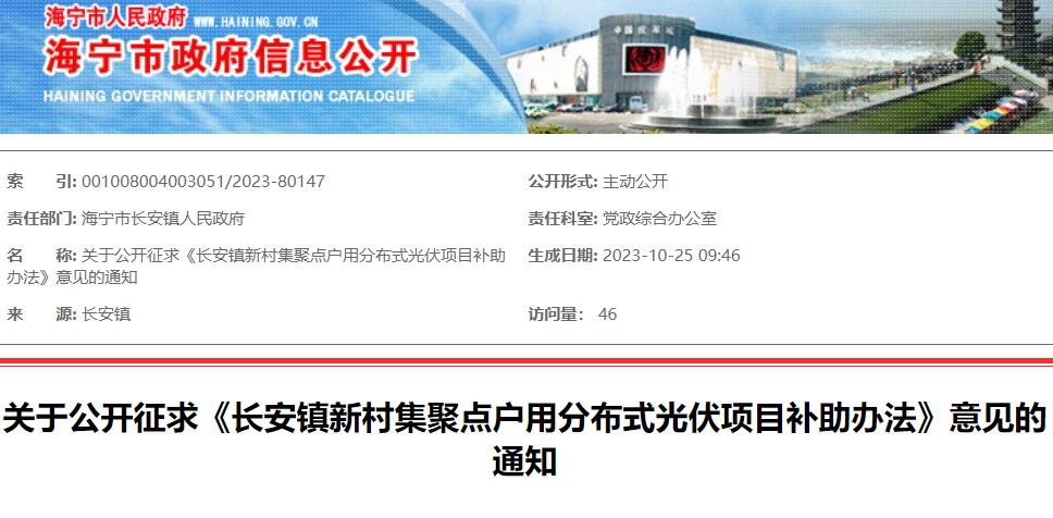 關(guān)于公開(kāi)征求《長(zhǎng)安鎮(zhèn)新村集聚點(diǎn)戶用分布式光伏項(xiàng)目補(bǔ)助辦法》意見(jiàn)的通知