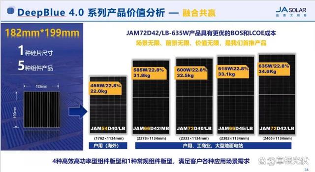據(jù)晶澳產(chǎn)品技術(shù)總監(jiān)張軍介紹,n型72新版型(JAM72D42-635)與原先182-n-78版型尺寸相同,功率可高達635W,組件效率22.8%,是目前行業(yè)182系列產(chǎn)品中功率最高的產(chǎn)品。另外,較原78版型產(chǎn)品Voc降低7.6%,熱斑可靠性更優(yōu);系統(tǒng)端單串組件數(shù)量增加,BOS成本更低。