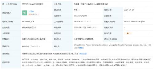 注冊(cè)資本3000萬(wàn)!中國(guó)電建在內(nèi)蒙古扎魯特成立新能源公司