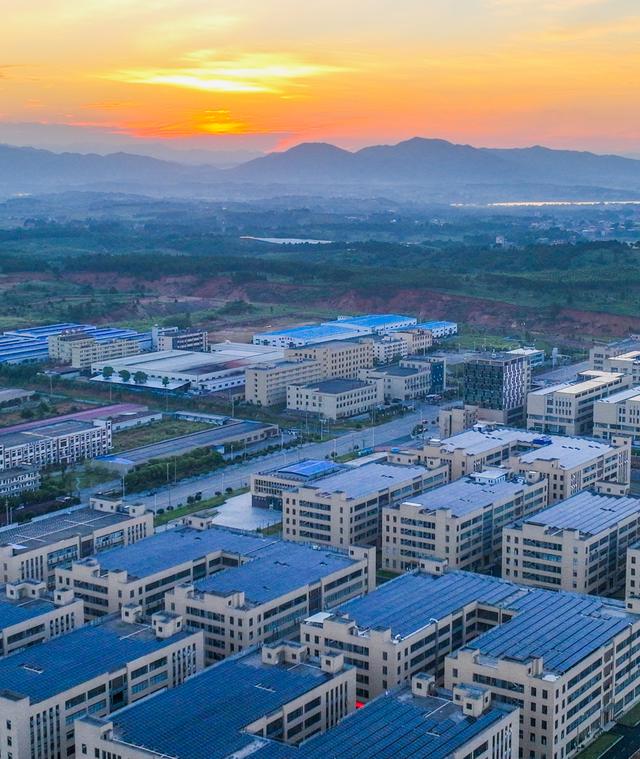 2024年7月16日,道縣高新技術(shù)產(chǎn)業(yè)開發(fā)區(qū)智能制造機(jī)械裝備產(chǎn)業(yè)園,光伏面板與夏日朝霞相映成景。