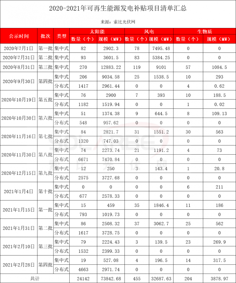2020年2月28日,國網(wǎng)公布2021年第四批可再生能源發(fā)電補貼項目清單。