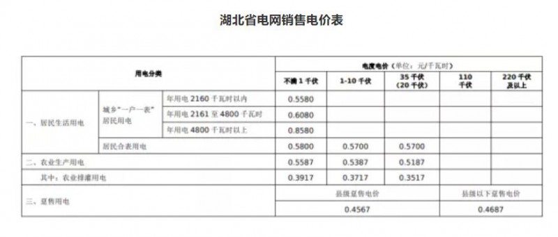 注:上表所列價格,居民生活用電和農(nóng)業(yè)生產(chǎn)用電價格含國家重大水利工程建設基金0.1125分錢,居民生活用電價格含大中型水庫移民后期扶持基金0.12分錢。