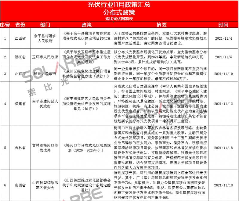 那么,11月份的光伏行業(yè)有哪些政策值得重點關(guān)注呢?下面來看索比光伏網(wǎng)的梳理。