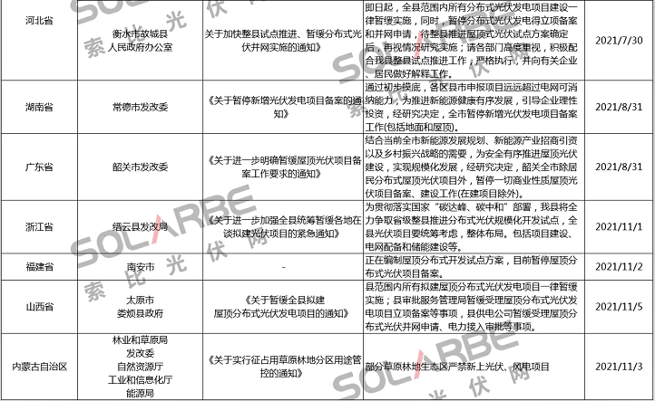 全國各地暫停光伏項目備案統(tǒng)計(全年統(tǒng)計)