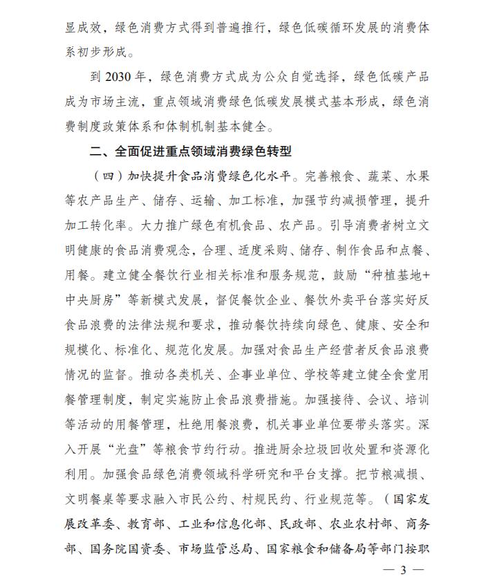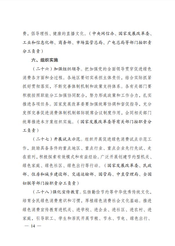 為深入貫徹落實《中共中央、國務(wù)院關(guān)于完整準確全面貫徹新發(fā)展理念做好碳達峰碳中和工作的意見》和《2030年前碳達峰行動方案》有關(guān)要求,根據(jù)碳達峰碳中和工作領(lǐng)導(dǎo)小組部署安排,國家發(fā)展改革委、工業(yè)和信息化部、住房和城鄉(xiāng)建設(shè)部、商務(wù)部、市場監(jiān)管總局、國管局、中直管理局會同有關(guān)部門研究制定了《促進綠色消費實施方案》?,F(xiàn)印發(fā)給你們,請結(jié)合實際,認真抓好貫徹落實。