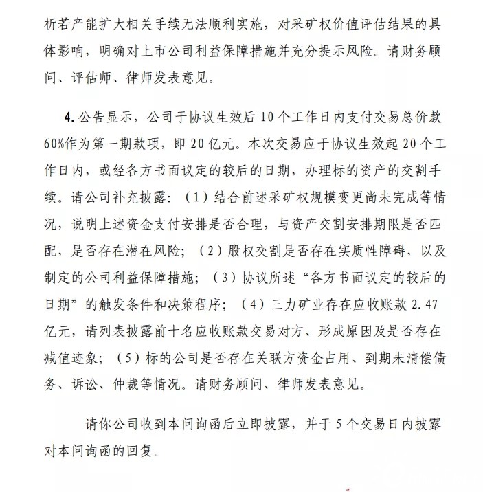 上交所近期發(fā)布問(wèn)詢函,就光伏玻璃巨頭福萊特對(duì)三力礦業(yè)、安徽大華東方礦業(yè)等100%股權(quán)的收購(gòu)案進(jìn)行問(wèn)詢,兩項(xiàng)收購(gòu)額總計(jì)為33.44億。