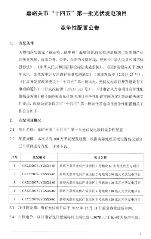 配儲規(guī)?!?0%!甘肅嘉峪關發(fā)布1GW光伏競爭性配置項目