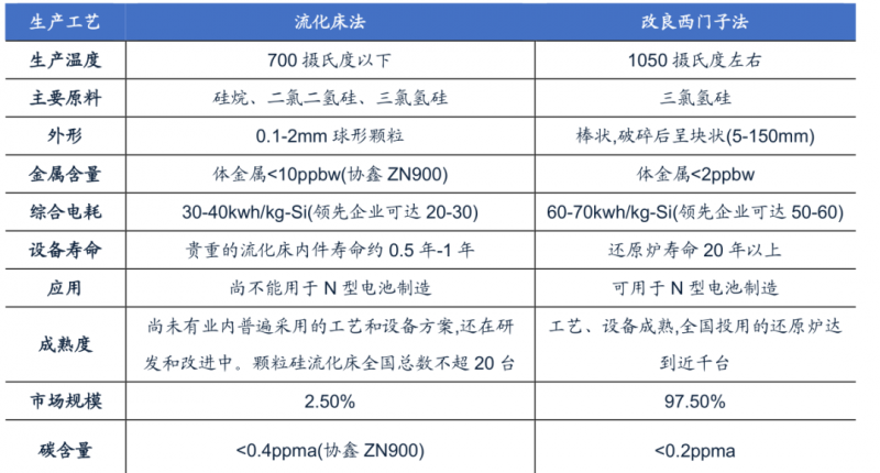 圖10:西門子法和流化床法的優(yōu)劣勢比較,資料來源:亞洲硅業(yè)科創(chuàng)板上市申請文件的審核問詢函回復,廣發(fā)證券