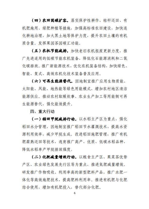 6月30日,農(nóng)業(yè)農(nóng)村部國家發(fā)展改革委發(fā)布了《農(nóng)業(yè)農(nóng)村減排固碳實施方案》,為貫徹落實碳達峰碳中和重大決策部署,推進農(nóng)業(yè)農(nóng)村綠色低碳發(fā)展,農(nóng)業(yè)農(nóng)村部、國家發(fā)改委制定了《農(nóng)業(yè)農(nóng)村減排固碳實施方案》,方案指出6大任務,10大行動。