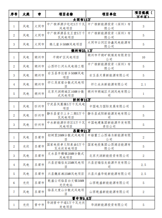 為推動(dòng)全省新能源項(xiàng)目健康可持續(xù)發(fā)展,省能源局組織各市對2020年及之前長期占用資源、遲遲未能建成的風(fēng)電光伏發(fā)電項(xiàng)目進(jìn)行了梳理。相關(guān)地市上報(bào)了本地區(qū)擬廢止項(xiàng)目清單,經(jīng)我局匯總,擬將云崗區(qū)協(xié)鑫雅兒崖鄉(xiāng)等54個(gè),總計(jì)規(guī)模138.8萬千瓦風(fēng)電光伏發(fā)電項(xiàng)目予以廢止,現(xiàn)予公示。相關(guān)企業(yè)如有異議,請向市能源局提出書面意見,并在公示期(5個(gè)工作日)內(nèi),由市能源局上報(bào)省能源局。