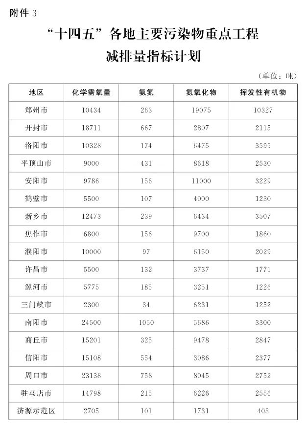 3.“十四五”各地主要污染物重點工程減排量指標計劃