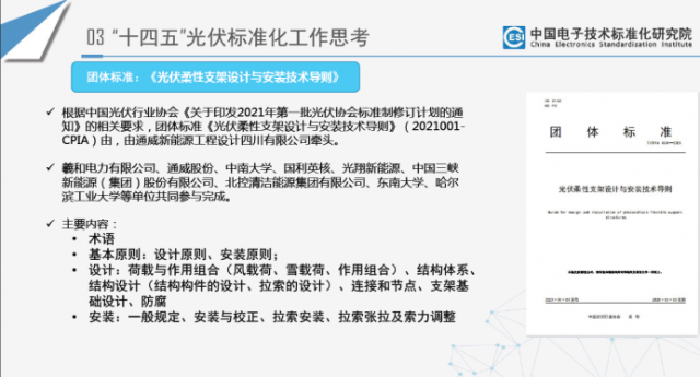 ●二是加快重點(diǎn)領(lǐng)域標(biāo)準(zhǔn)制定,關(guān)鍵基礎(chǔ)性IEC標(biāo)準(zhǔn)加快轉(zhuǎn)化,新技術(shù)、新應(yīng)用、跨領(lǐng)域融合等前沿性標(biāo)準(zhǔn)研制,如光伏+儲(chǔ)能、光電建筑、智能光伏等新興的跨領(lǐng)域融合標(biāo)準(zhǔn)研制,以高質(zhì)量的標(biāo)準(zhǔn)引領(lǐng)產(chǎn)業(yè)高質(zhì)量發(fā)展。