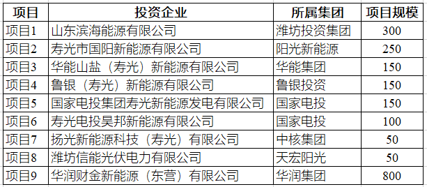 魯北鹽堿灘涂地千萬千瓦風光儲一體化基地共分為9個項目,由華潤集團、濰坊投資集團、陽光電源、國家電投、華能集團等企業(yè)聯(lián)合開發(fā)